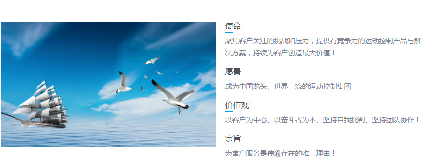 “成就客戶”明確了所有雷賽人的偉大責(zé)任。幫助國內(nèi)外自動(dòng)化設(shè)備行業(yè)的廣大客戶,發(fā)掘和滿足他們的運(yùn)動(dòng)控制需求,實(shí)現(xiàn)他們的設(shè)備目標(biāo)和企業(yè)夢(mèng)想。偉通機(jī)電人堅(jiān)持以客戶為中心,快速響應(yīng)客戶需求,為客戶提供優(yōu)質(zhì)、及時(shí)、相對(duì)低成本的產(chǎn)品和服務(wù),持續(xù)為客戶創(chuàng)造長(zhǎng)期價(jià)值進(jìn)而成就客戶。成就客戶是成就偉通、成就偉通人才的唯一途徑。